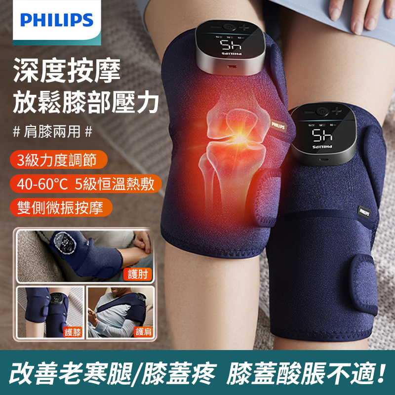 膝蓋受涼不適、長時間行走關節疲勞,膝蓋需要按摩與放鬆,飛利浦膝蓋按摩器-3D振動熱敷雙膝,輕暖貼合,自在放鬆。升級雙膝按摩,左右同步使用,舒適一步到位~ ·3擋振動按摩,釋放膝關節壓力 ·環抱式包裹熱敷,5擋溫度可調節 ·雙側微振按摩,仿真人捶打,舒爽暢快 ·艾絨包隱藏內袋,高效驅散寒濕 ·智能數顯+語音播報,操控簡單快捷 ·3D環膝貼合,屈膝坐立自如 ·無線設計,隨時按摩,120分鐘長效續航 ·加配60cm延長帶,多用途佩戴按摩 ·一機多用設計,肩/肘/膝都能按摩