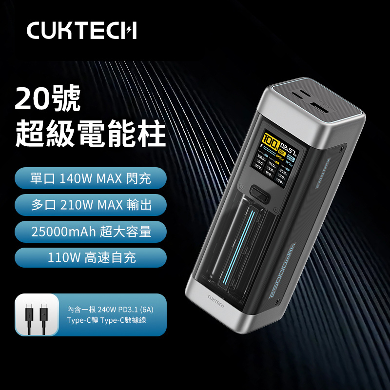 20號超級電能柱-以極致態度打造酷感科技,三年經典全面升級,再塑行動電源新標桿。極客外觀,顏值性能,一手掌握!