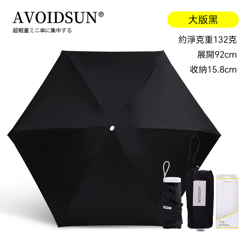 ·防UV紫外線功能99%以上,UPF 50+,遮光率100%,防曬遮雨,晴雨兼用 ·超強潑水網格胚布,防潑水等級可達4級 ·短而輕:長度約15.8cm,重量約128g,傘下直徑92cm ·超輕量折疊雨傘, 收納後體積輕巧, 方便攜帶
