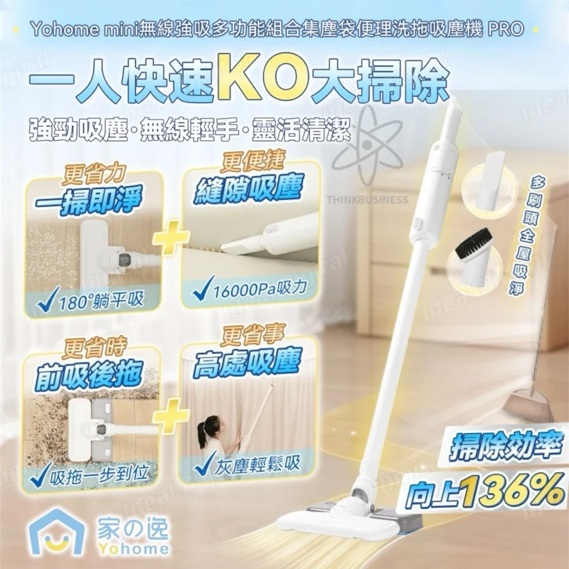 家の逸 Yohome mini無線強吸多功能組合集塵袋便理洗拖吸塵機 PRO YH-014