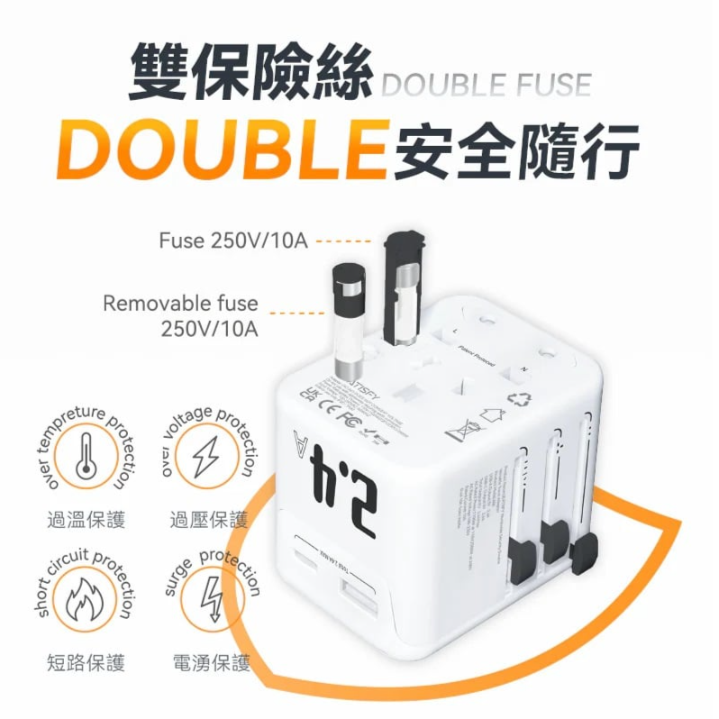 2.產品名稱:美國USATISFY 全球旅行雙保險安心雙重萬用充電插座轉換插頭