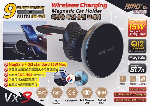 The latest Korea brand AMG-CT VX-3🔥 Car magnetic Qi2 wireless charging stand MagSafe + Qi2 standard 15W Max