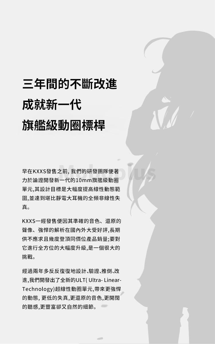 KATO通過有限元分析有限元類比結合重複實驗驗證,優化了ULT動態驅動器和聲腔的結構和體積,以實現無與倫比的線性失真效能。 它在幅頻響應和相頻響應方面都表現出色,從而使音色和聲場得到更好的恢復。 為了進一步優化KATO的音色,我們開發了全新的Spring Tips矽膠耳尖,不僅提高了佩戴舒適度,防止了聲音洩漏,還抑制了耳尖出聲口的弱共振,提高了高頻線性,帶來了更自然的音色。